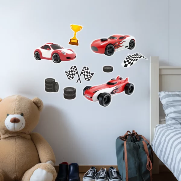 Skapa en actionfylld racingvärld i rummet med detta set av väggdekor racing. Du får racingbilar, däck, en vinnarpokal och andra racinginspirerade detaljer som förvandlar rummet till en racerbana. Våra väggdekaler är lätta att fästa, flytta och ta bort, vilket gör det enkelt att skapa en unik look. Perfekt för alla som älskar motorsport.